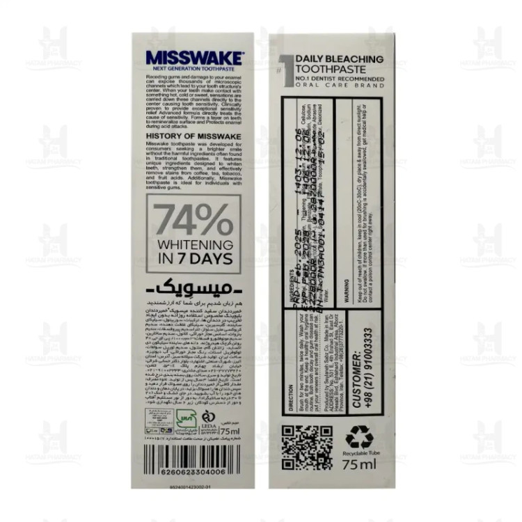 MISSWAKE DAIL YBLEACHING WHITHENING خمیر دندان بیلیچینگ روزانه میسویک